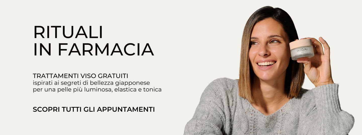 Vieni a scoprire Ikigai Beauty in farmacia. Ogni mese organizziamo giornate di bellezza gratuite per conoscerti e rispondere alle tue domande sulla cura della pelle.