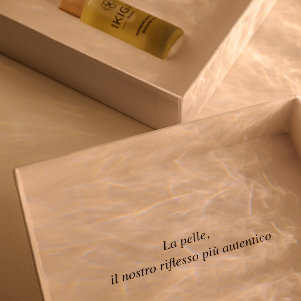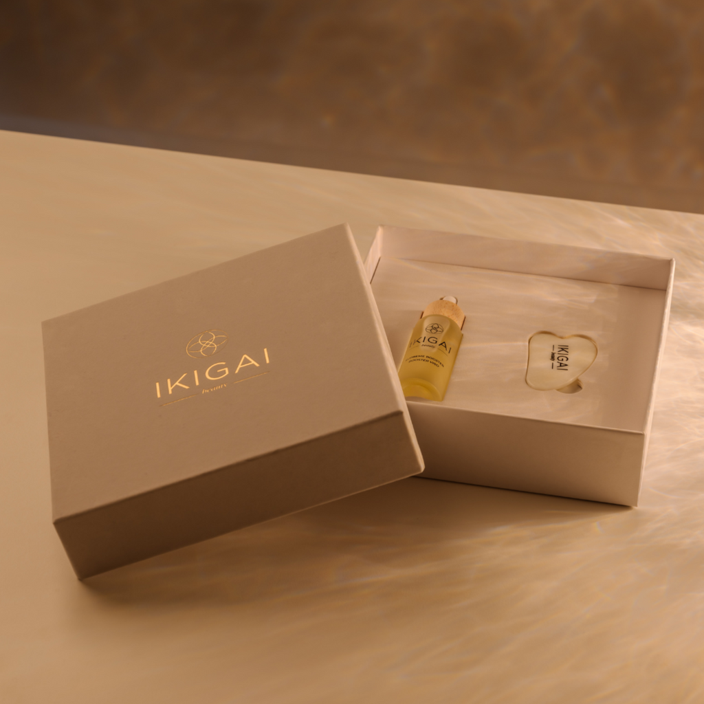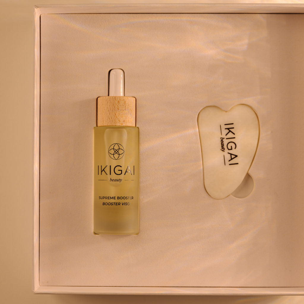 Apply 4/5 drops of Supreme Booster on face, neck and cleavage cleansed and massage with the Gua Sha in natural stone.