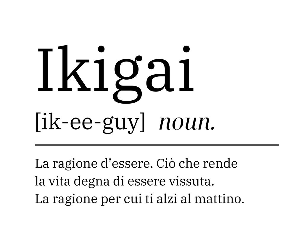 L’Ikigai è un’antica filosofia giapponese che mira a individuare il senso della nostra esistenza. Il termine nasce dall’abbinamento delle parole: “iki”, in giapponese “vita”, e “gai” che significa “valore”.